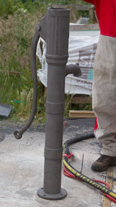 The horse trailor to the left took 178 minutes to blast using 8 x 25kg bags of abrasive media. The water pump below just took 20 minutes to blast and used half a bag ie. 12.5kg sand. Total Cost £19.25 plus VAT |